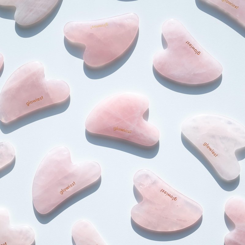 [glowiest] Rose Quartz Gua Sha for Face and Body: 100% Natural Rose Quartz | Lymphatic Drainage | Improving Fine Lines and Wrinkles - Muscle Relaxing