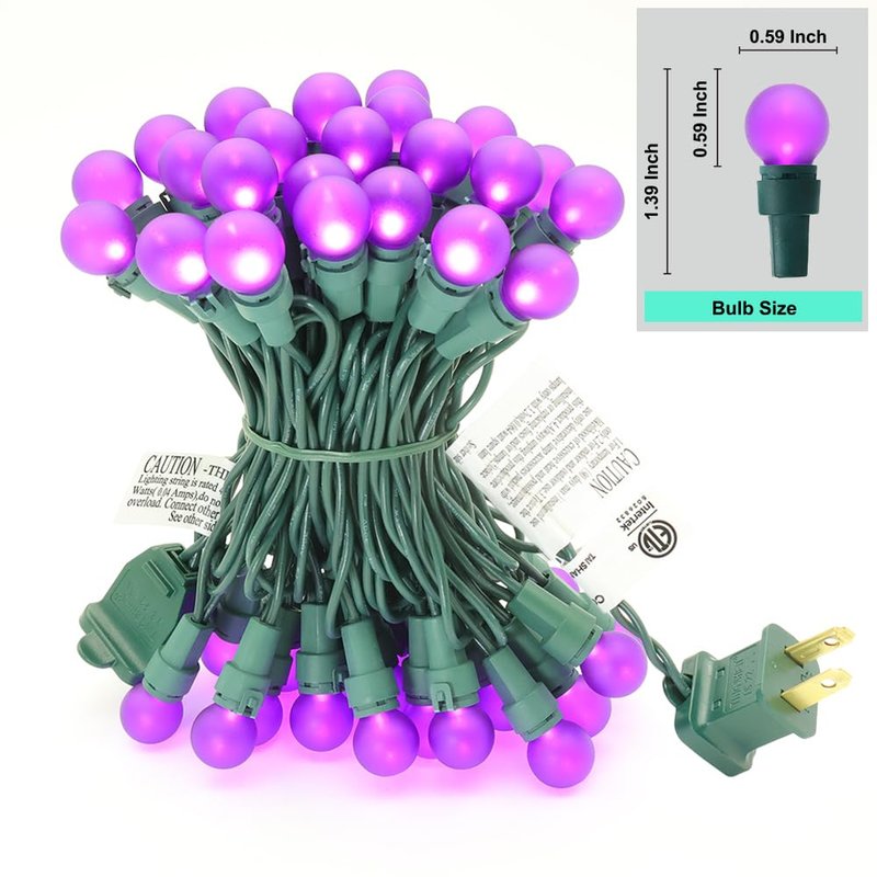 - String of 50 Frosted Purple Mini Lights(G15) for indoor and outdoor use, ETL Approved, safety use.