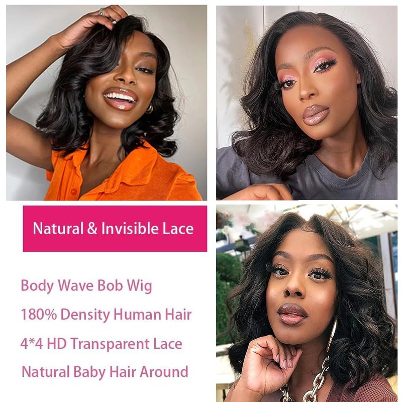 - 💕【Human Hair Wig Quality】:180% Density Bob Wig,4x4 Lace Frontal Glueless Wigs With Baby Hair. No Glue,No Spray,No Product Needed Zero Adhesive & Skill,Healthy and No Worry of The Allergic Anymore,Natural and Healthy,No Strange Smell.