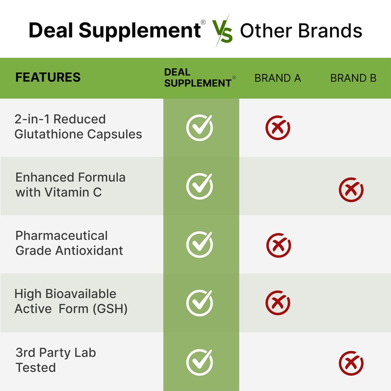 - High Purity and Assay – Deal Supplement glutathione 1,000mg per serving, made with over 98% pure fermented glutathione powder, 2 in 1 enhanced with vitamin C, may promote immune health and general wellness.