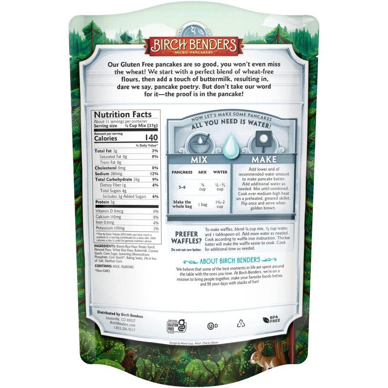 - 1 - 14 oz pouch of Birch Benders Gluten-Free Pancake and Waffle Mix