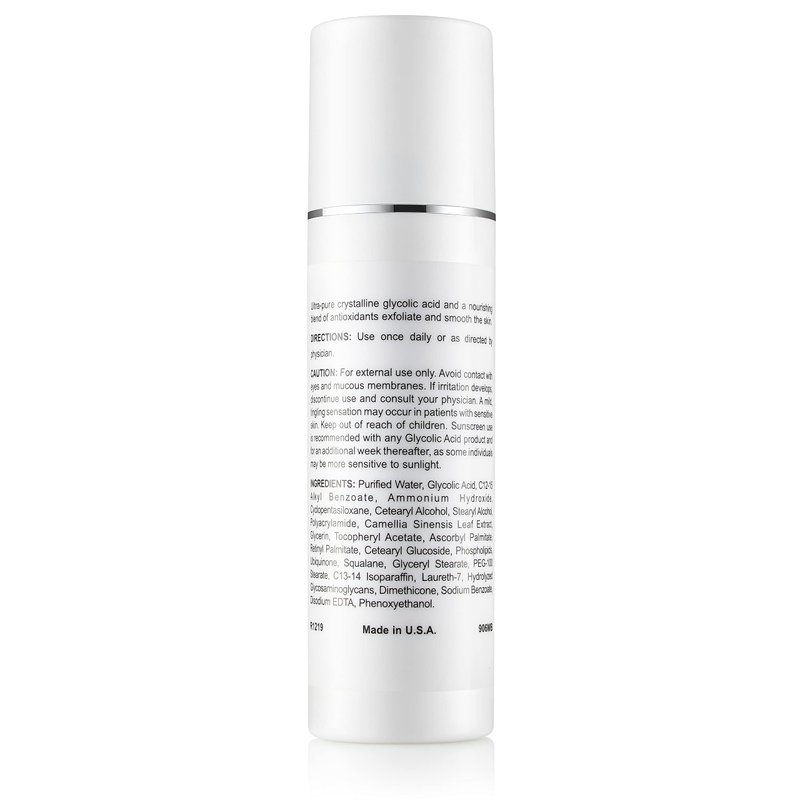 - Contains 20% Glycolic Acid: Glycolic Acid helps to gently slough, or exfoliate, the dead cell layer which manifests fine lines and uneven skin tones. When the dead cells of the skin's most outer layer are removed, newer, fresher skin is revealed. With continued use, the appearance of fine lines seems to fade and clearer, more supple skin is achieved.