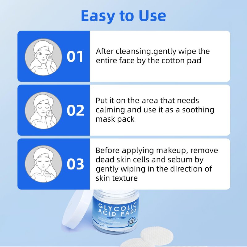 - 【Convenient Skincare Essential】Conveniently packaged in a jar with 60 pads, these resurfacing pads are designed for hassle-free application. Simply swipe the pad over your face and let the powerful formula do its magic.