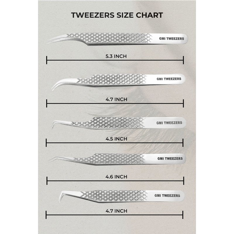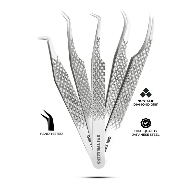 GMI Lash Tweezers - Set of 5 Eyelash Tweezers - Stainless Steel Eyelash Extension Tweezers - Multipurpose Lash Tweezers for Eyelash Extensions for Individual.