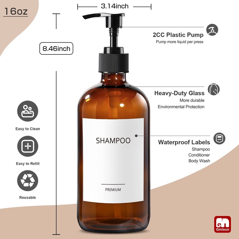 - 【Best Gift Ideal】And this empty shampoo bottles is very suitable as an ideal gift for festivals, housewarmings, weddings, and parties for family and friends. GMISUN pursues environmental protection, uses high-quality glass bottles, and we do our best to protect the products while reducing packaging, so if you have any issues with the products you receive, please feel free to contact us and we will solve the issues to your satisfaction.