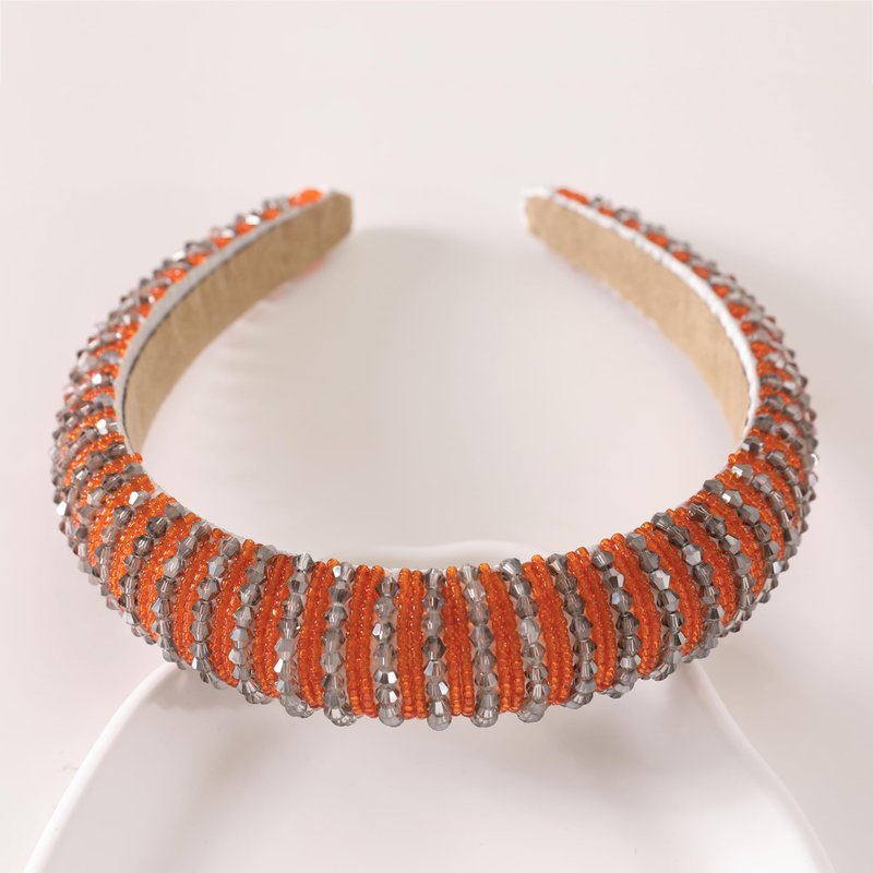 Gmmidea Beaded Rhinestone Headband for Women Girls Fashion Sparkly Crystal Headband Bling Thick Padded Headband Fancy Jeweled Hair Band Festival Hair Accessories B-(Orange & Gray)