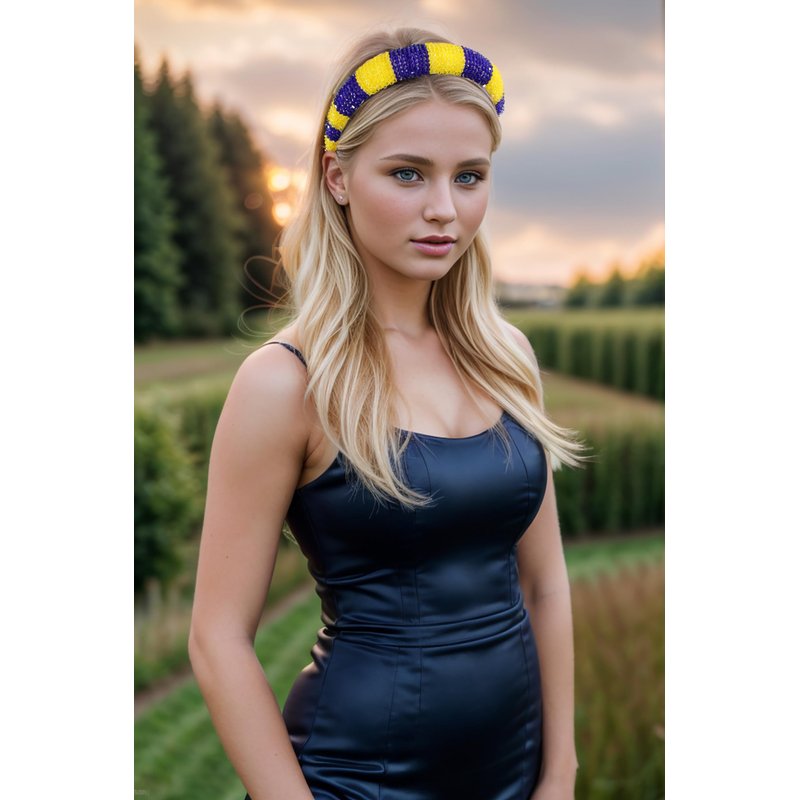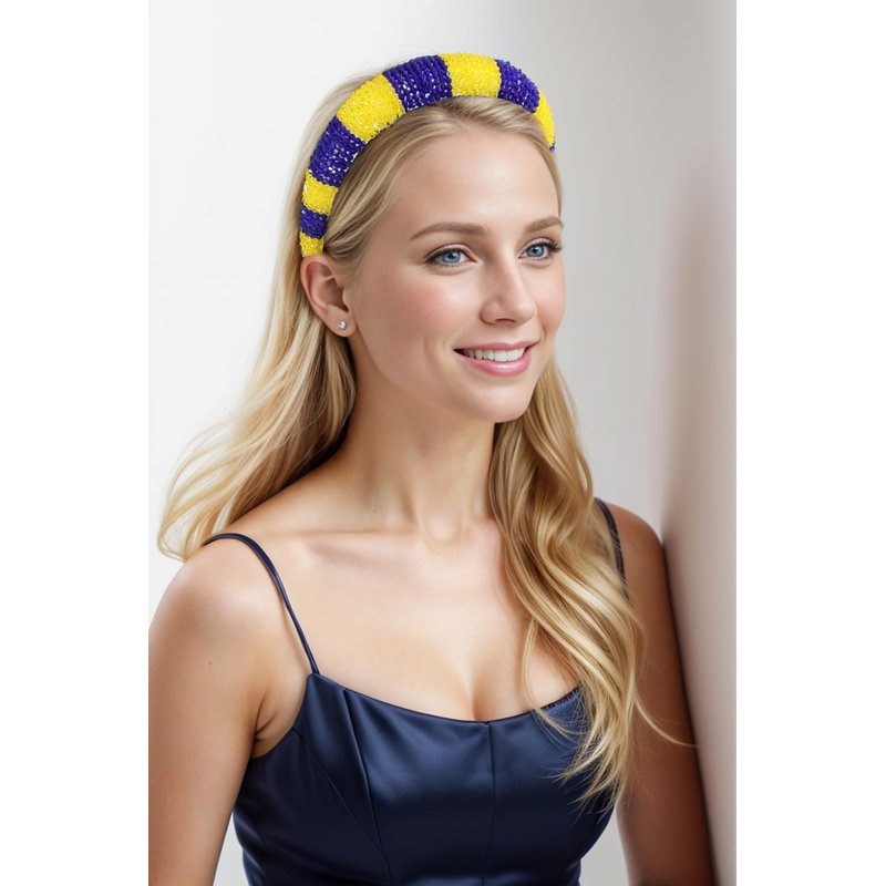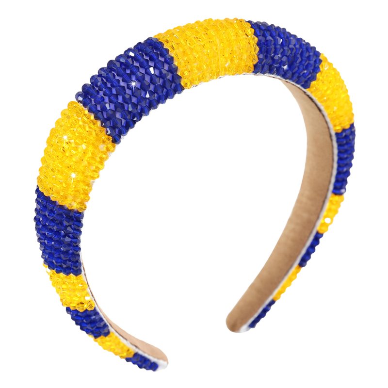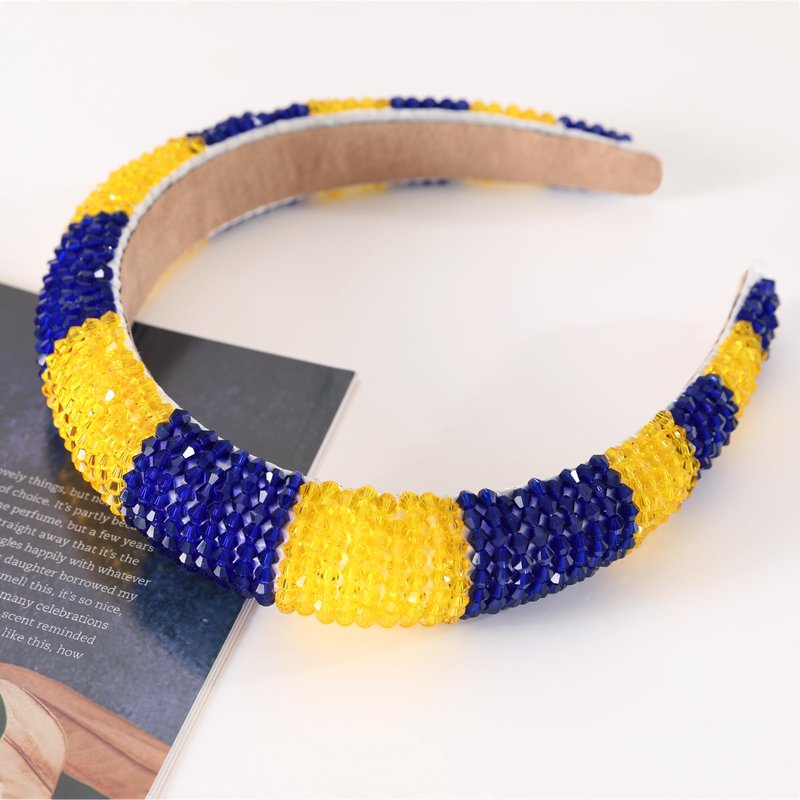 Gmmidea Beaded Rhinestone Headband for Women Girls Fashion Sparkly Crystal Headband Bling Thick Padded Headband Fancy Jeweled Hair Band Festival Hair Accessories C-(Yellow & Blue)
