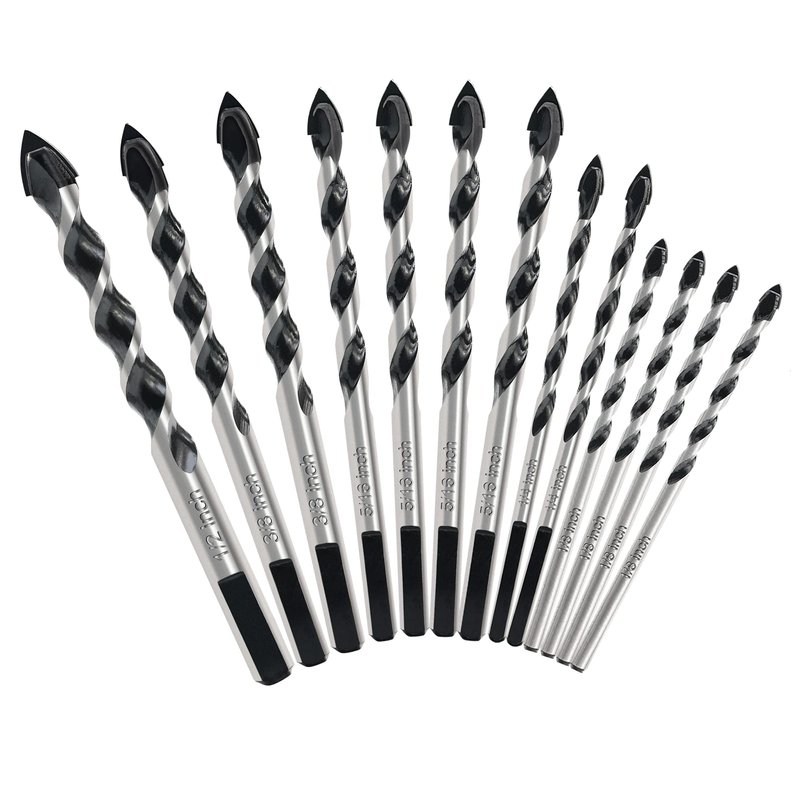 - [Size]:The masonry drill bit set includes 1/8" (3 inch length - 2 included), 1/4" (4" length - 2 included), 1/4" (6" length - 2 included), 5/16 (6" length), 3/8" (6" length - 2 included), and 1/2" (6" length). placed in a hard plastic container.