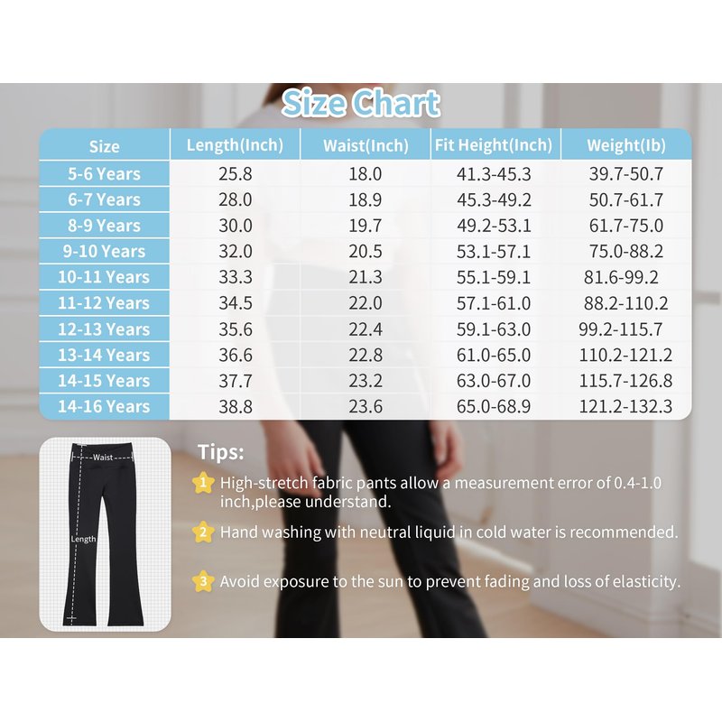 - Soft & Stretchy: Kids bell bottom leggings made of a polyester and spandex fabric, which are skin-friendly, care for girl's sensitive skin, buttery soft and comfortable that feel like a gentle hug.