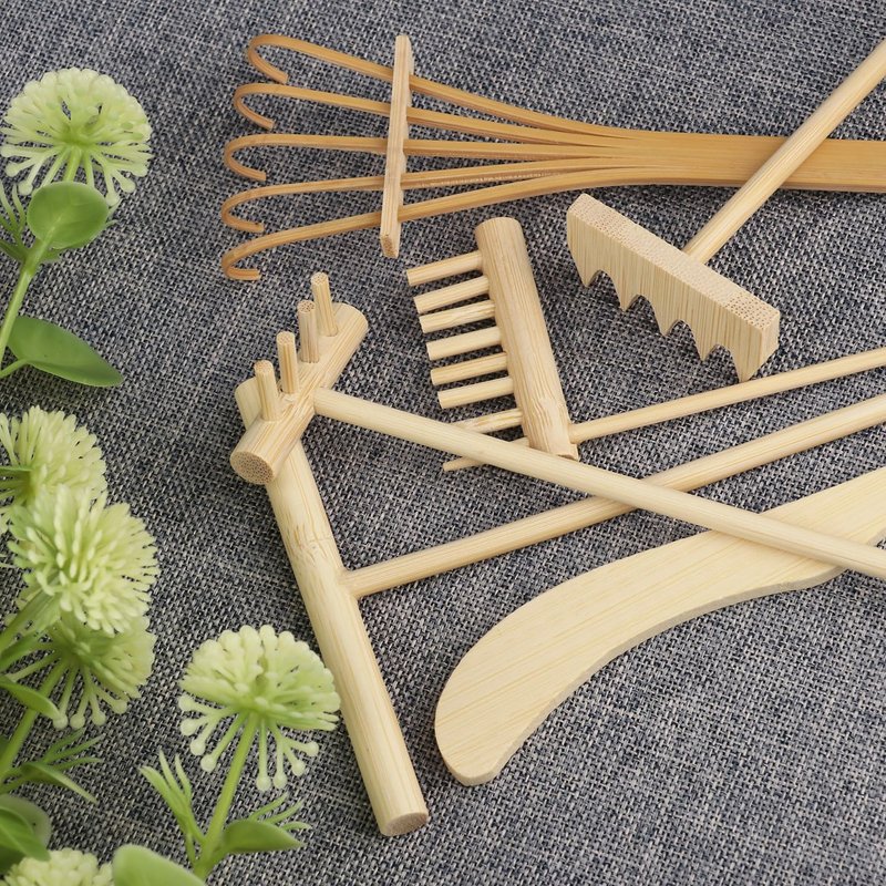 At GNIEMCKIN, we believe that finding inner peace and tranquility should be accessible to everyone. Our DIY sand Zen garden tool set is designed to help you create a serene environment in your home or office that promotes relaxation, mindfulness, and creativity. Our high-quality and professional original Zen garden tool set is perfect for those looking to enhance their meditation and relaxation practices or to add a touch of peace and harmony to their living or work space. Product Details: Material : Bamboo Quantity: 5 sets x 6 Pcs , 30Pcs in total Size : Bending Teeth Rakes : 5.7 inches (Length) Four-Teeth Rakes : 5.7 inches (Length) Triangle Shape Teeth Rakes : 5.7 inches (Length) Pushing Sand Rakes : 5.7 inches (Length) Spinning Rakes : 7 inches (Length) Drawing Styluses : 7 inches (Length)