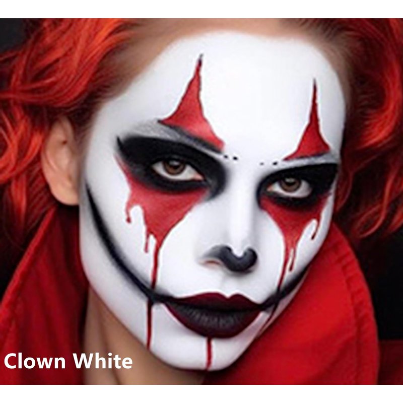 - 【Clown White Face Body Paint for Halloween SFX Makeup】Professional Clown White Face Paint Wand.Soft and moderate consistence.Good coverage.Go on smooth.Easy to blend.No cracks and flakes.No fading.No splotchy and patchy.No stains.Perfect for SFX cosplay Clown Zpmbie Vampire makeup.As a white face paint make-up, our white cream stick is very suitable for all kinds of SFX based needs. It can describe face makeup more detail and is very easy to blend. It is an excellent choice for white face makeup.