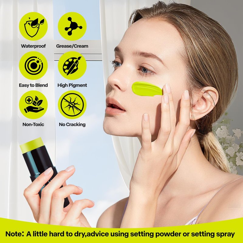 - 【Oil-based Yellow Face Body Paint】1.06 oz Ogre Green body paint stick with a matte creamy formula.Waterproof and good coverage face paint.Go on smooth.Easy to blend.No cracks and flakes.No fading.No splotchy and patchy.No stains.Waterproof,great for Eye Black Sports,such as eye blak baseball/softball.