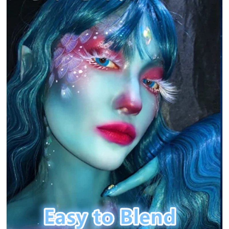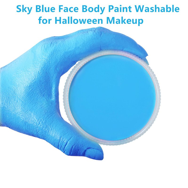 - 【Light Blue Face Body Paint for SFX Makeup】Light Blue Face Paint Washable for Halloween Makeup.It is water based.Go on smooth and easy to blend.Highly pigmented and good coverage.No cracks and flakes.It needs some time to dry.We strongly recommend to use a setting powder or setting spray to prevent being touched.