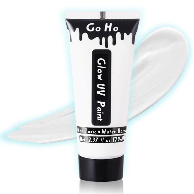 Go Ho Neon White Body Paint Washable(2.37oz,70ml),under UV Blacklight Neon Face Paint,Water Based Neon Fluorescent White Face Paint for Adults Children SFX Cosplay Costumes Festivals Halloween Makeup