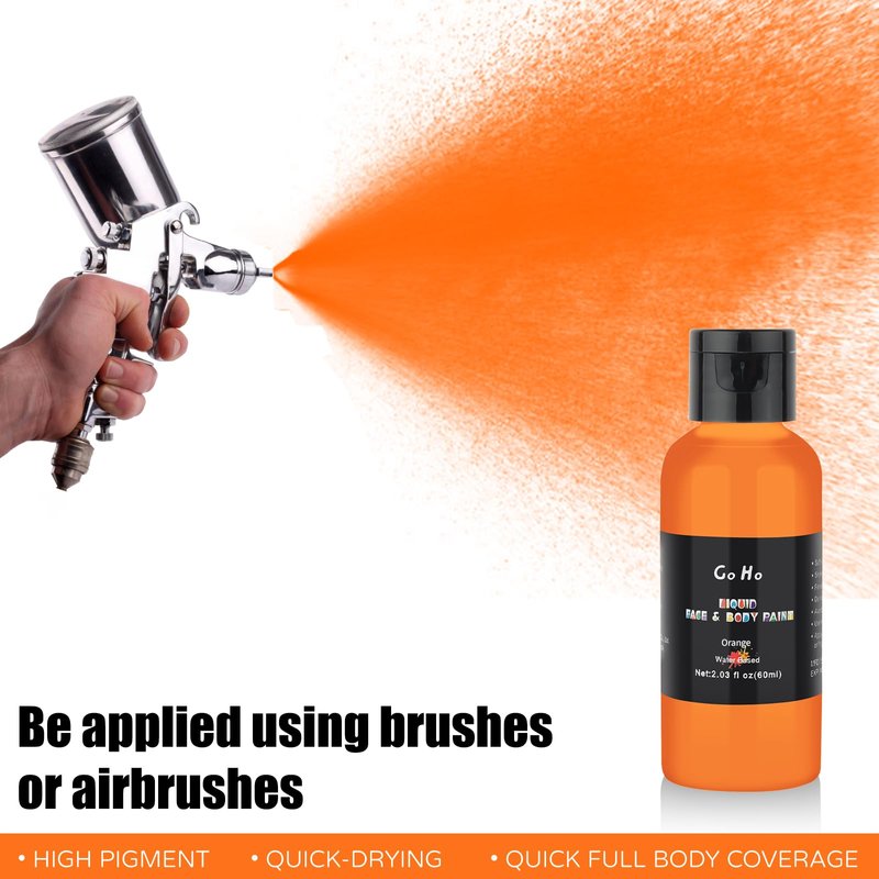- 【Highly pigmented Orange Face Body Paint Liquid for Airbrush Makeup】 Liquid face body paint contains highly concentrated pigments, resulting in intense and vibrant colors. This allows for achieving dramatic effects in line with FX makeup, perfect for Halloween looks.