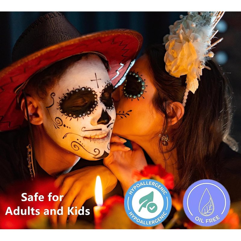 Water based liquid face body paint.Safe formula, gentle on skin. Suitable for adults and children. Can be sprayed multiple times to make makeup more evenly distributed,good coverage, no cracks. Notice:It is no fading but we highly recommend using a sealer if you’ll be wearing the look for an extended period of time,as rain or sweat will impact the wearability.