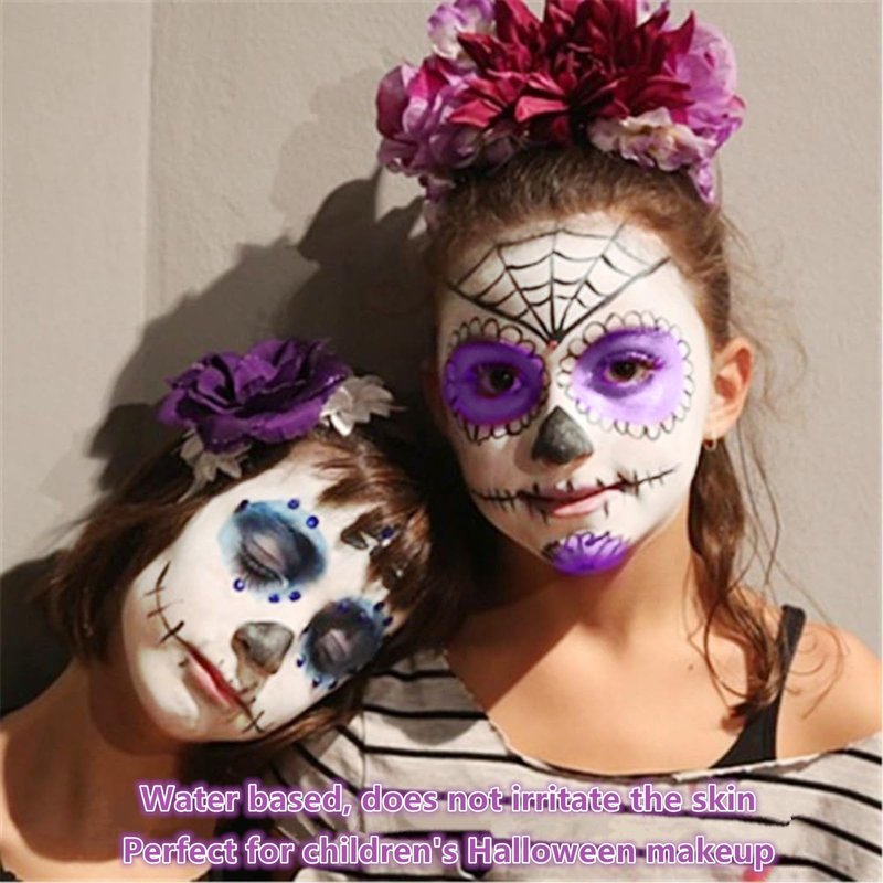 - 【Easy to Dry & Highly Pigmented】Easy to dry, dry in about 5-10 minutes.Highly pigmented and smooth application. Suitble for all kinds of skins.Halloween makeup has become very simple, and it is also very convenient for children to use. it is lightweight and easier to carry when going out.
