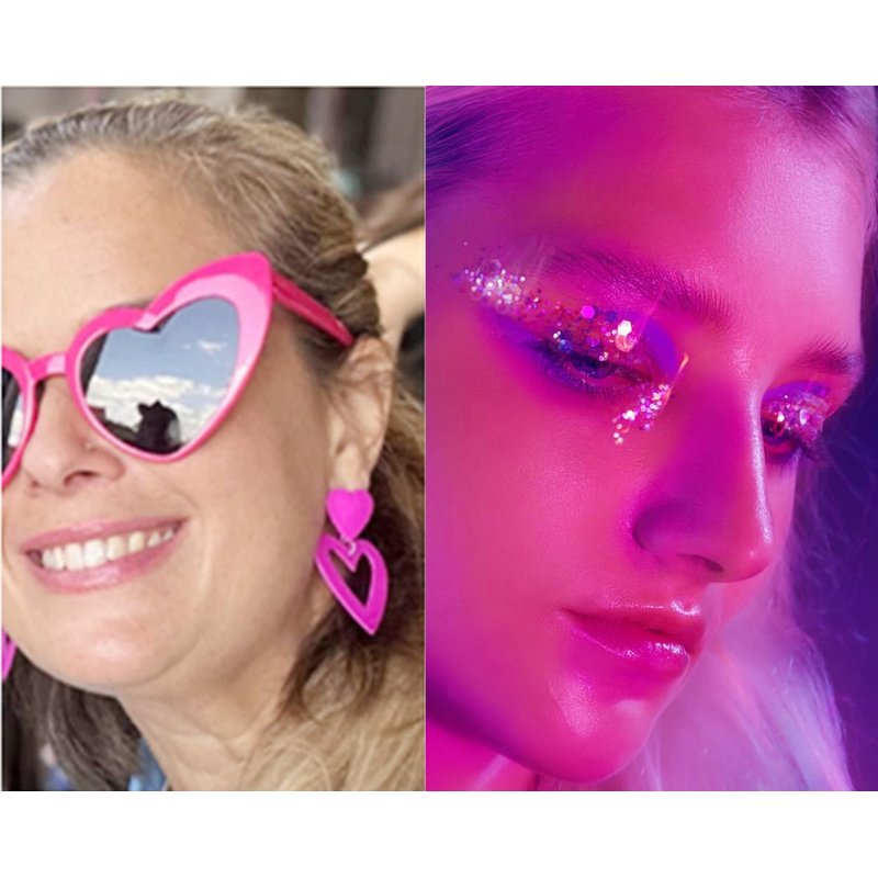 - Color: 2 PCS Hot Pink Heart Earrings + 1 PC Pink Body Glitter