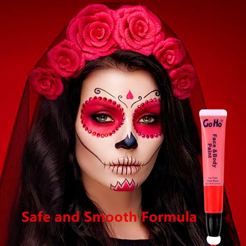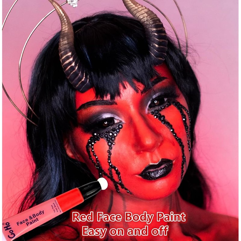 - 【Cream Red Face Body Paint Wand for Halloween Makeup】It is Red Face Paint Washable.Soft and moderate consistence.Nor too thick or too runny.Good coverage.Go on smooth.Easy to blend.Easy on and off.No cracks and flakes.No fading.No splotchy and patchy.No stains.Perfect for Halloween Cosplay SFX Skull Clown Millie Devil Makeup.
