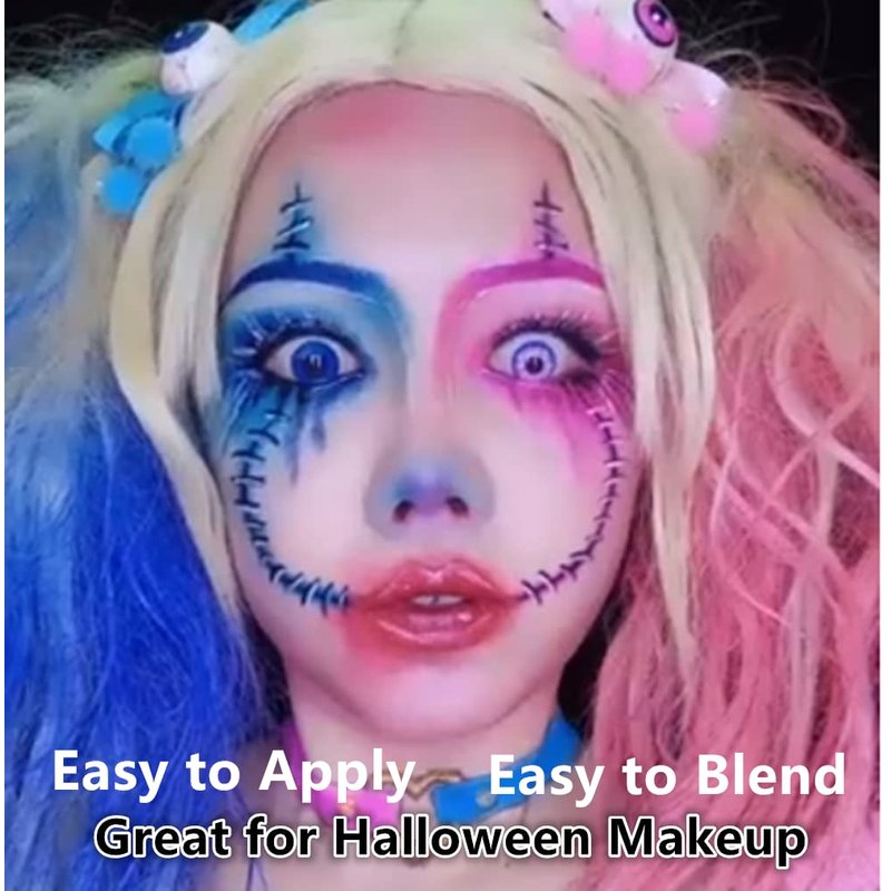 - 【Easy to Apply & Easy to Blend】Creamy easily blend for Hallowwen SFX makeup.Just squeeze out and apply directly with your brushes or sponge,easy to use for adult and children.Our face body paints are fantastic for creating highlights, low lights, or gradients between different colors.So easy to blend.Great to create bright vibrant characters for superhero, cosplay, or fantasy looks for festivals,Halloween,party,Christmas.Highly pigmented.