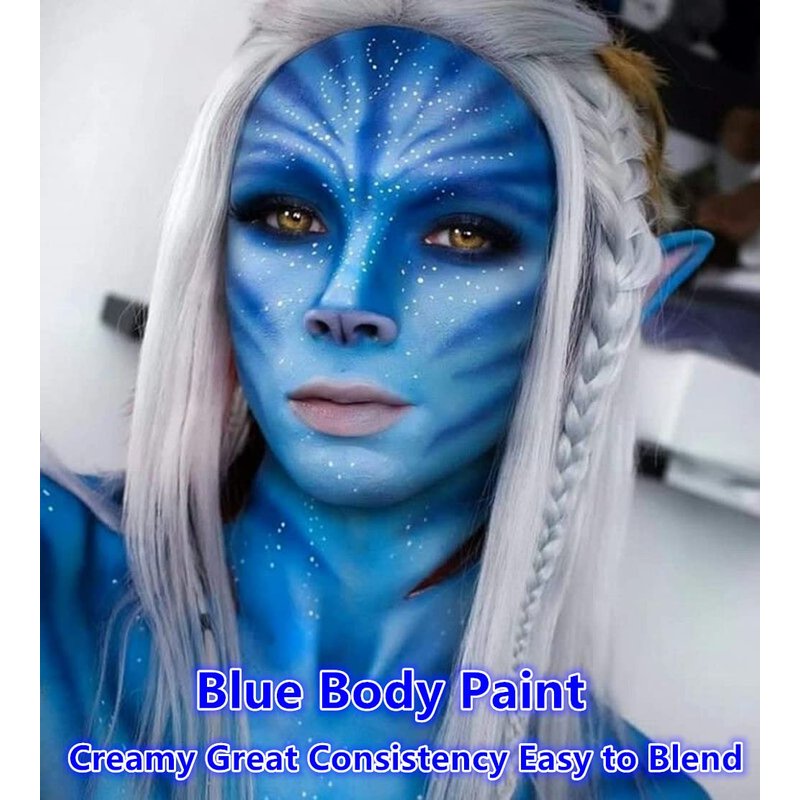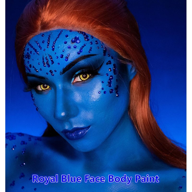 - 【Water Based Cream Royal Blue Face Body Paint】Soft and moderate consistence royal blue face body paint.Not too thick or too runny.Good coverage.Go on smoothly.Easy to blend.Easy on and off.No cracks and flakes.No fading.No splotchy and patchy.No stains.Great for Professional Halloween Cospaly Smurf Mystique Avatar Clown and Harley Quinn Makeup Face Body Paint.