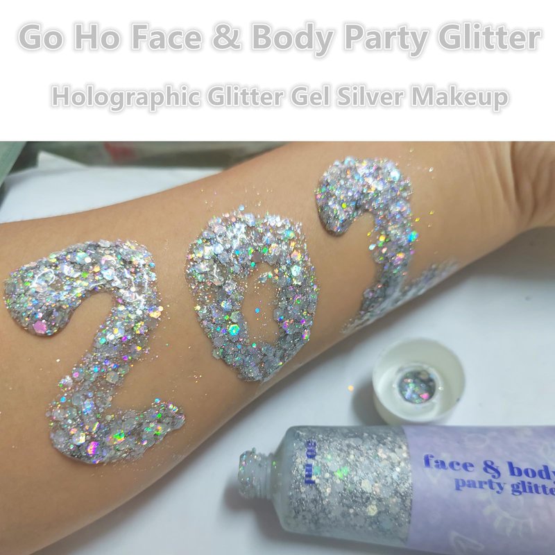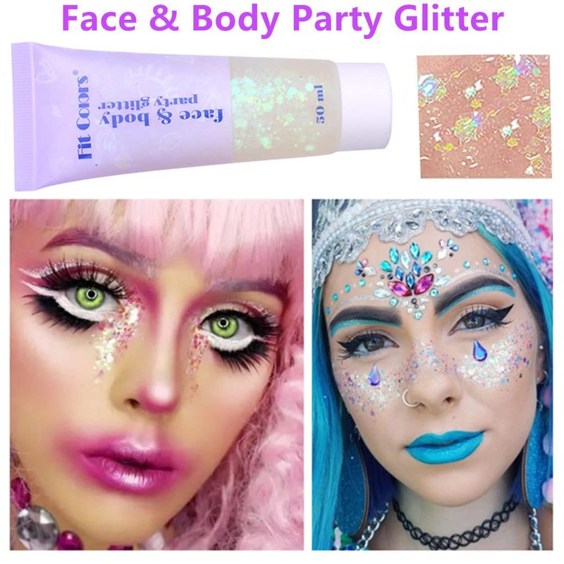 - 【Long Lasting Silver and White Body Glitter Gel】Shine and durable silver&white holographic chunky glitter sequin gel,great for face,body,hair,eye,lip,nails glitter makeup and so on.You can easily use directly.It is self-adhesive sticky,non-sticky after dries,pretty for playing glitter dress up and body glitter paint .Unique safe material formula,it was long lasting like new after lots of sweat.