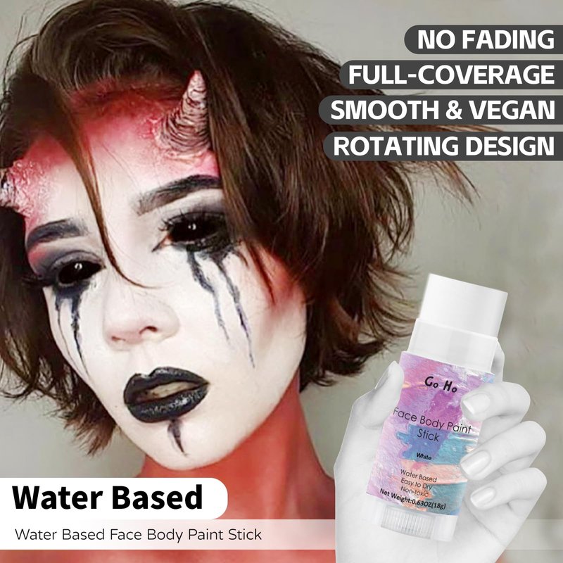 Go Ho Water Based Clown White Face Body Paint Stick,Cream to Powder Face Painting,Easy-to-use Face Paint for Halloween SFX Zombie Skeleton Vampire Clown Cosplay Costume Makeup,0.63oz