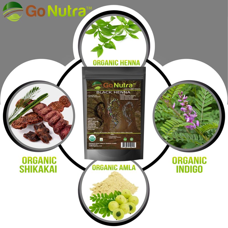 Go Nutra Black Henna Powder Organic 8 oz Natural Black Hair Dye - Black Henna Hair Dye & Beard Dye (226 grams)
