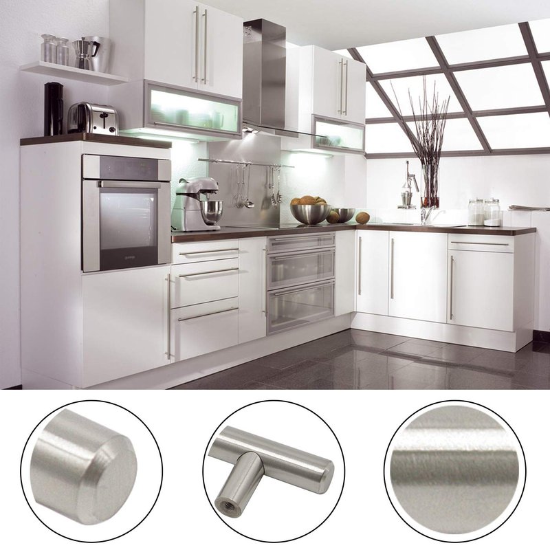 Gobrico Pack of 5 Stainless Steel Furniture Cabinet Pulls Dresser Handles T-bar Euro Style Kitchen Cupboard Door Knobs 128mm/5Inch Hole Centers