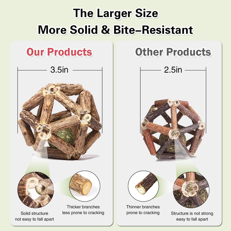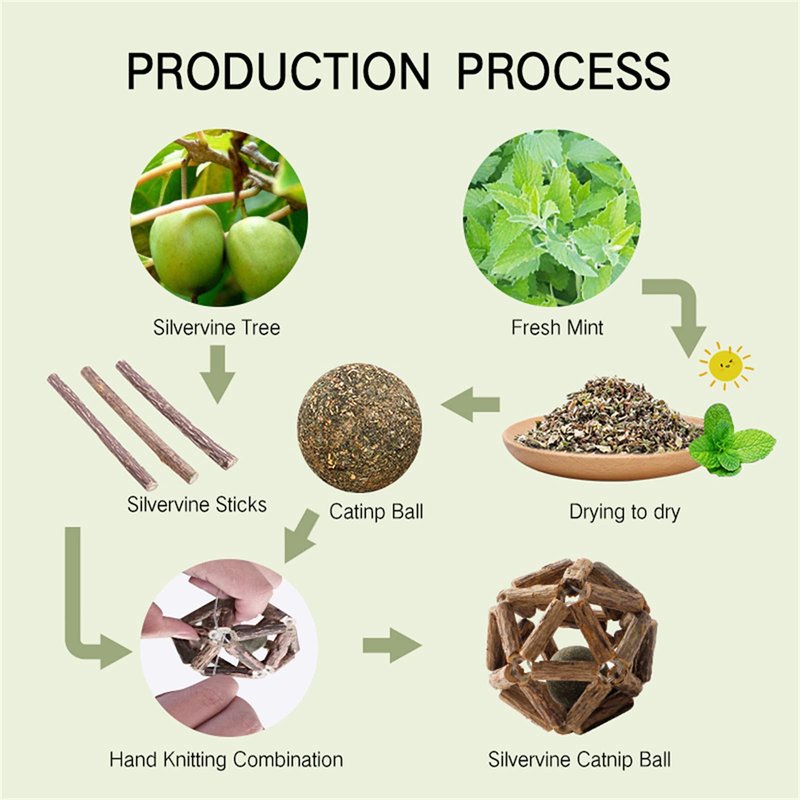 Differentiation: The Silvervine Catnip Ball is upgraded from the traditional Silvervine stick, by hand weaving it into a toy ball to interests your cat, do not need to do much introduce of the ball to your cat by simply throw the ball to the front of your cat.