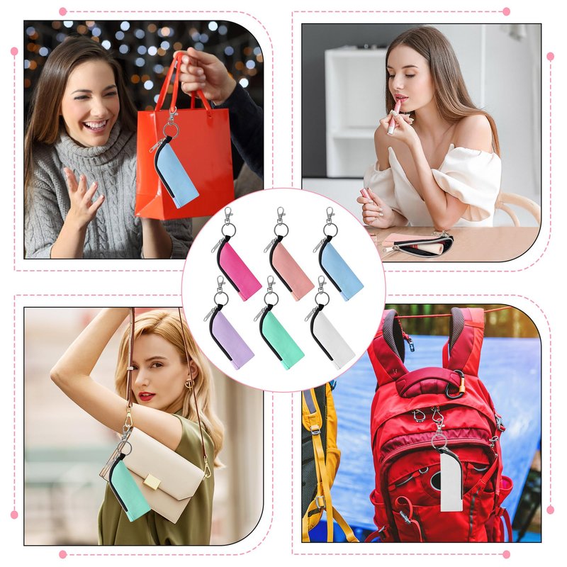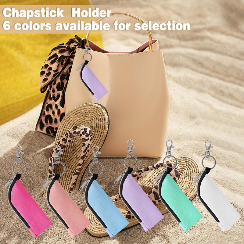 Chapstick Holder, 6 Pcs Lip Balm Sleeve Pouch, Portable Lipstick Holder Bag, Clip-on Makeup Travel Accessories, Great Stuffers for Women