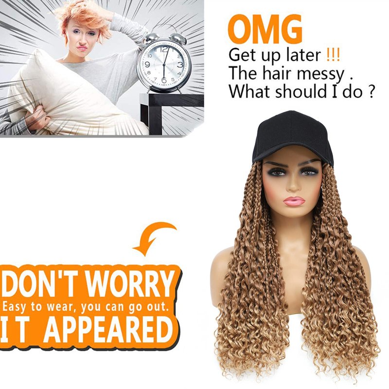 - Braided Hair Wig Material: The braided hat wig is made of high quality hand-made boho box braids with a baseball cap. It is fashion, natural and fascinating. Different colors available for making choice. Hat with Crochet box braids are relatively low maintenance and are a great style for your every day look.