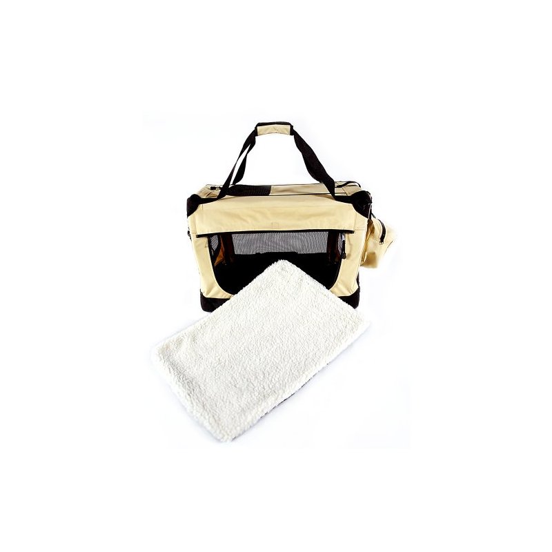 Folds down for easy transport. Complete with carrying handle. The GoGo Soft Crate is made from heavy duty water resistent canvas material with 1000D reinforced canvas corners. The bottom is made with a water resistent faux leather. Comes with a machine washable fleece pad. The frame is made with a durable powdercoated tube frame that is easy to fold. Great for indoor or outdoor use. The GoGo Soft Crate is the absolute safest crate available.