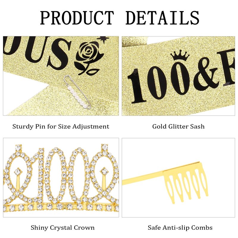 - Package Included: The package contains "100 & Fabulous" birthday sash and 100th crown and a pearl pin. You will be like a queen in your birthday celebration