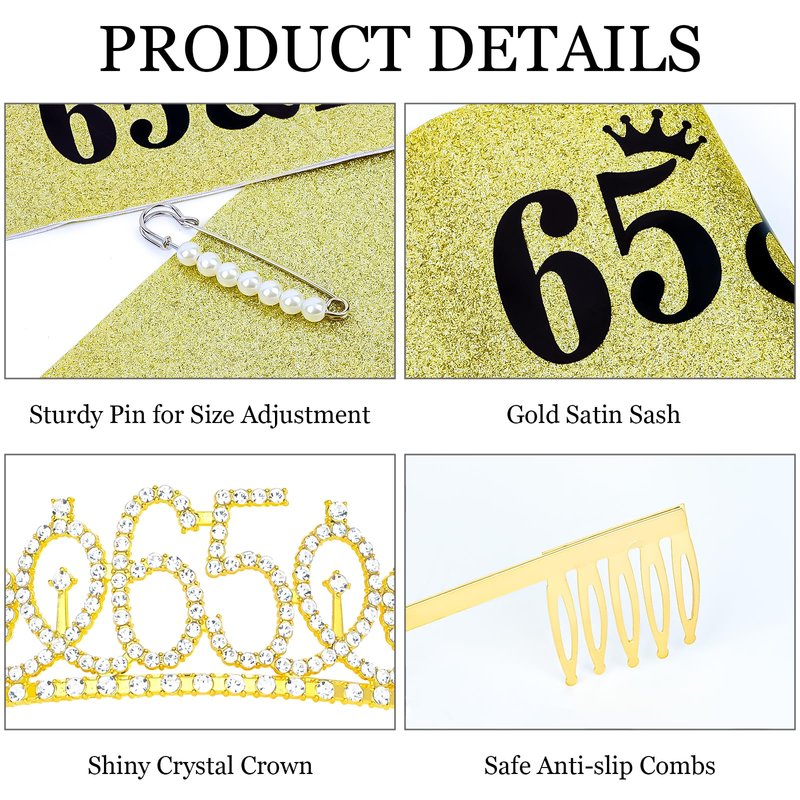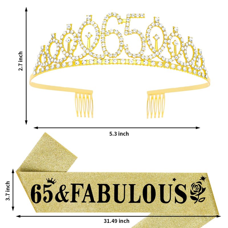 - 【Package Included】: The package contains "65 & Fabulous" birthday sash and 65th crown and a pearl pin. It's a great birthday gift for you. You will be like a queen in your birthday celebration.