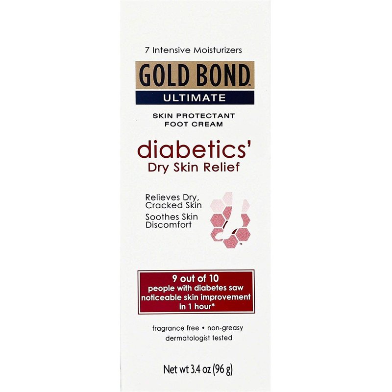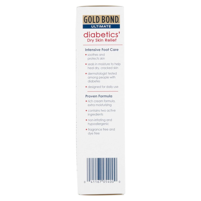 Gold Bond Ultimate Diabetics Dry Skin Relief Foot Cream, 3.4 oz. Hydrate dry, flaky, rough diabetic skin and get immediate and soothing hydration that lasts all day. It smoothes rough patches and penetrates 10 surface layers deep. Nine out of 10 diabetics saw noticeable skin improvement in 1 hour. You get 7 intense moisturizers and 3 nourishing vitamins, including vitamin C to help protect against environmental stressors, vitamin A to help improve the appearance of the skin, and vitamin E to help prevent moisture loss.