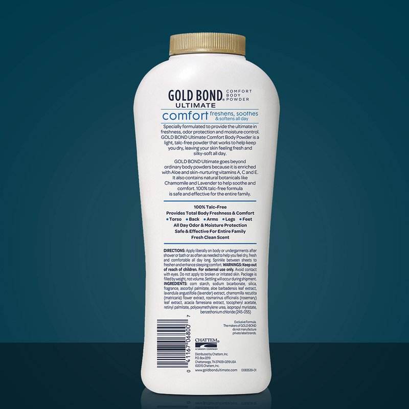 - CONTAINS: Three (3) 10-oz. bottles of Gold Bond Ultimate Comfort Body Powder, Talc-Free Formula with Aloe & Chamomile