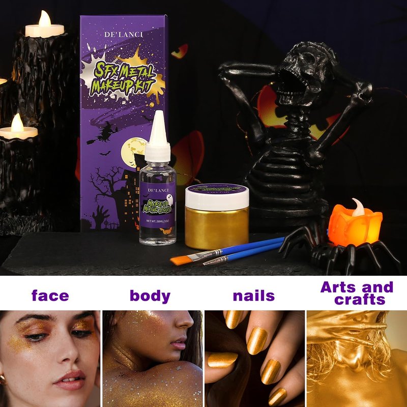 Face Paint Metallic Powder Kit 🎃 Always Enjoy Halloween!🎃 💕Grab some DE'LANCI professional face paint makeup metallic powder kit for Halloween special SFX makeup, nail art, cosplay, resin craft and start your creative journey! 💕 FEATURES: ✦ Highly pigmented ✦ Long-lasting ✦ Waterproof ✦ Skin-friendly ✦ Cruelty-free
