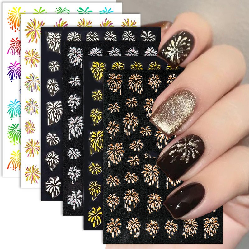 - 【Firework Flower Design】Gold Firework nail decals,large number of different patterns for you to use and replace in daily life,fireworks nail decals are full of sensuality and elegance, perfect for new year party nail decorations.