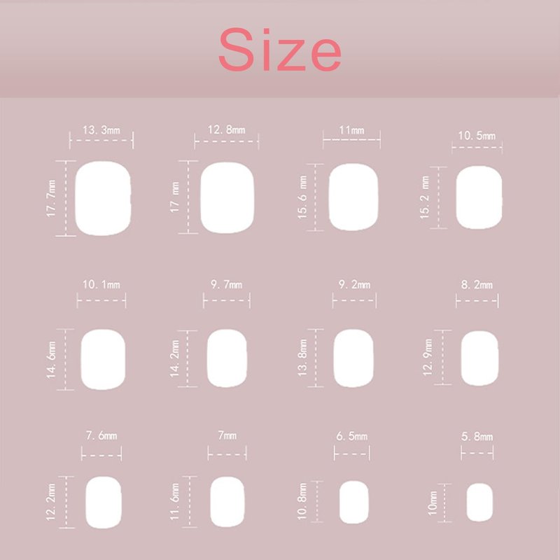 - 【Package & DIY Nails】You'll get 24 false nails in 12 sizes. 1 mini nail file, 1 small wooden stick, 1 piece of adhesive tab glue. You can safely choose a fake nail that fits your finger size and DIY your desired nail shape.