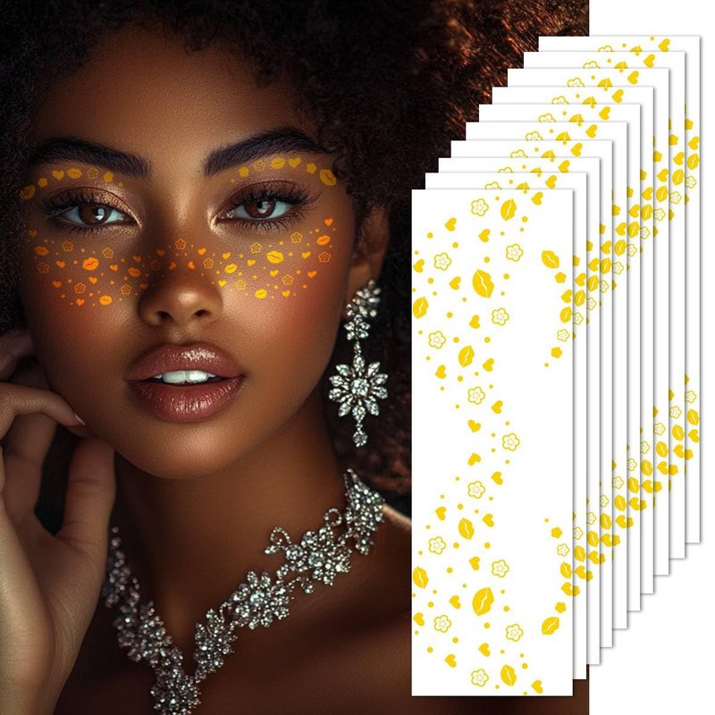 Glitter Face Tattoos Designed for those seeking a unique experience and dazzling flair, these glitter makeup patches easily enhance your natural beauty with a hint of whimsy. Wear all day long to give your look the perfect sparkle.