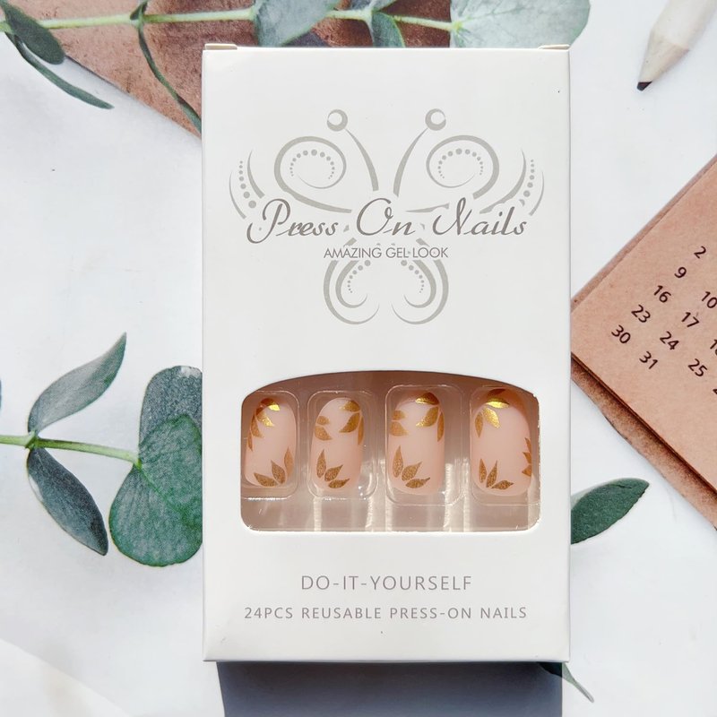 Fake Nails Set: 24Pcs Fake Nails 24Pcs Nail Glue Sticker 1Pcs Wooden Stick 1Pcs Mini Nail File 1Pcs Alcohol cotton Features: -The nails are packed in a paper box, which are easy to store and keep your nail pieces in order. -A variety of patterns can meet your different needs and make your fingers look more elegant. -1 box has 24 pieces. 10 different sizes for your different fingers. -The nail glue sticker is made of high-quality material. The strong adhesion can make your own nails and false nails perfectly bonded. How to use: 1. In order for the nails to bond better with the nails, we recommend filing the surface and edges of the nails flat with a wooden stick and a mini nail file. 2. Clean the surface of the nails. 3. Choose your suitable nail glue stickers and paste it on your nails. 4. Choose your favorite pattern and the appropriate nail piece, press it on the nail glue sticker and hold it for about 30 seconds. 5. Fix the length and shape of the fake nails to your liking. 6. False nails are best not touched by water within 1-2 hours. How to Remove: 1. Soak your nails in warm water for 10-15 mins. This will soften the glue, making it easier to remove the nail. 2. Gently use a wooden stick to take it off peel pre-glued nails off from the side or just use your hand to peel it off. Note: 1. Due to different lighting effects or display screens, the actual color may be slightly different from the picture. Thank you for your understanding. 2. Don't wet your fingers within one hour of wearing fake nails. 3. We provide high-quality jelly gel (lasting for more than a week), which will not damage natural nails, and it can make fake nails reused.
