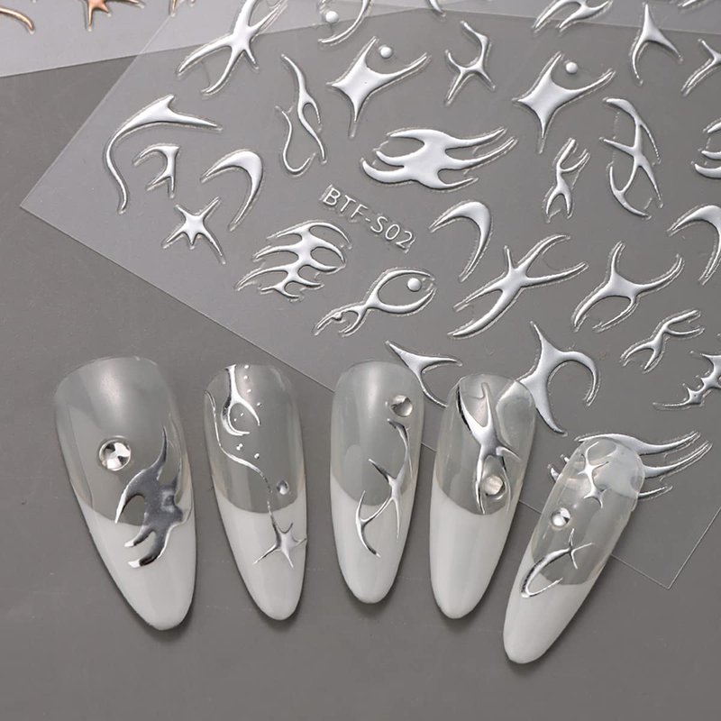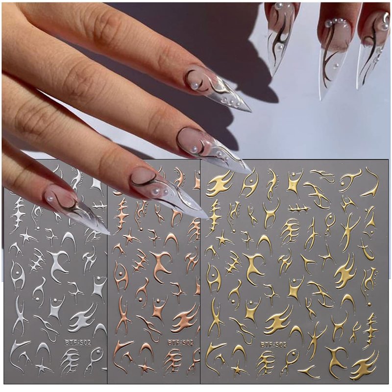 - Package: You will receive 6 sheets 3D Stripe lines flame nail stickers,You can choose different patterns to decorate your nails, create a variety of dazzling Metallic nail designs.