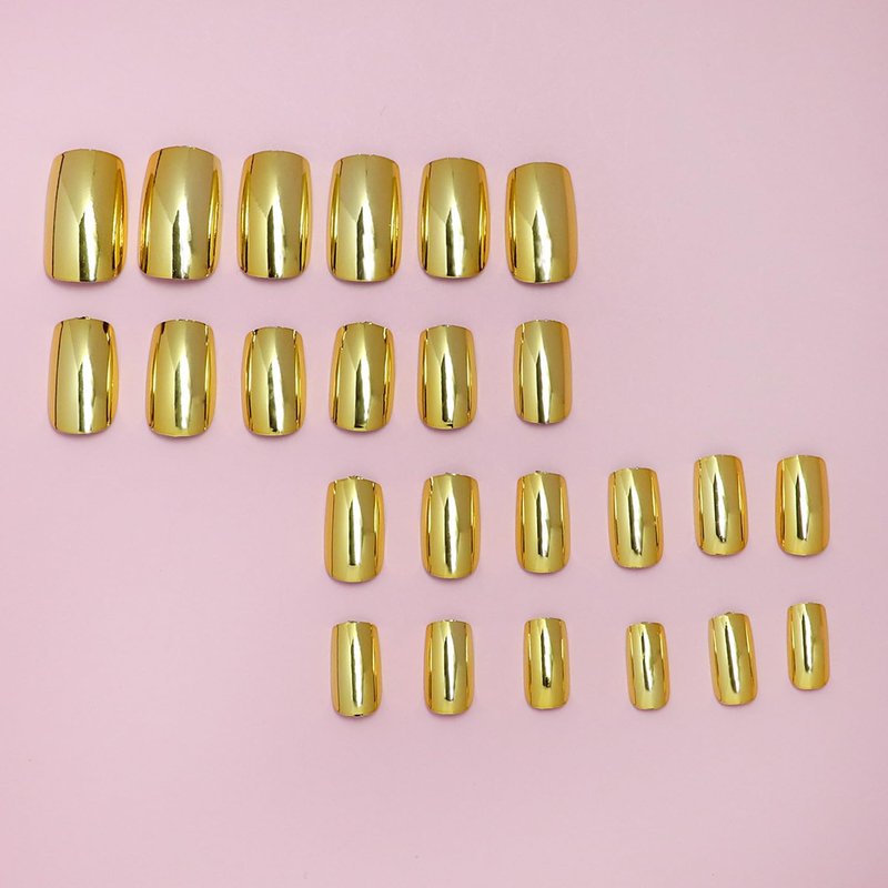 Gold Press on Nail Square Fake Nail Glue on Nail Gold Mirror Nail Design Artificial False Nails Short for Women Girls Stick On Nail for Acrylic Nails