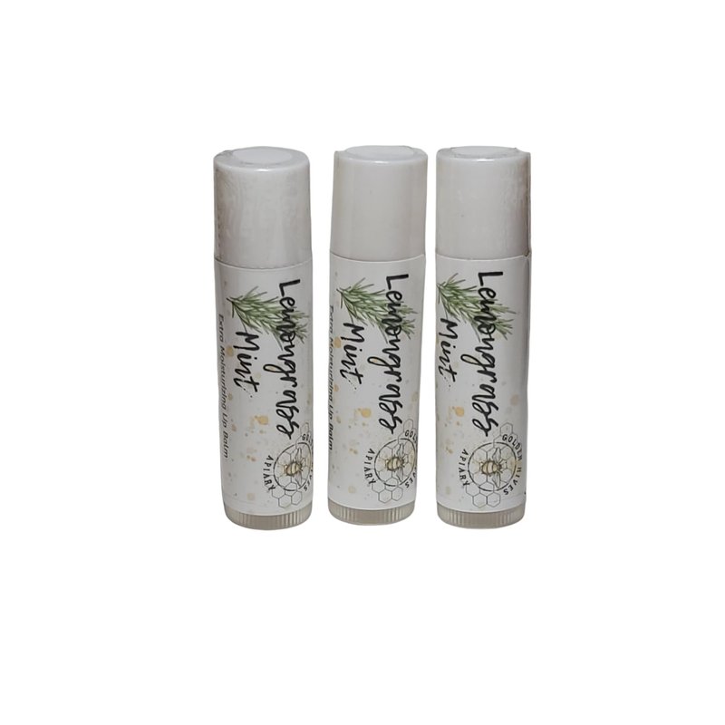 Golden Hives Apiary Moisturizing Lip Balm With Raw Beeswax & Organic Cocoa Butter - Lemongrass Mint (pack of 3)