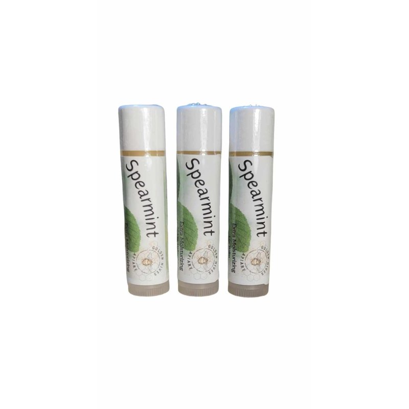 Golden Hives Apiary Moisturizing Lip Balm With Raw Beeswax & Organic Cocoa Butter - Spearmint (Pack of 3)
