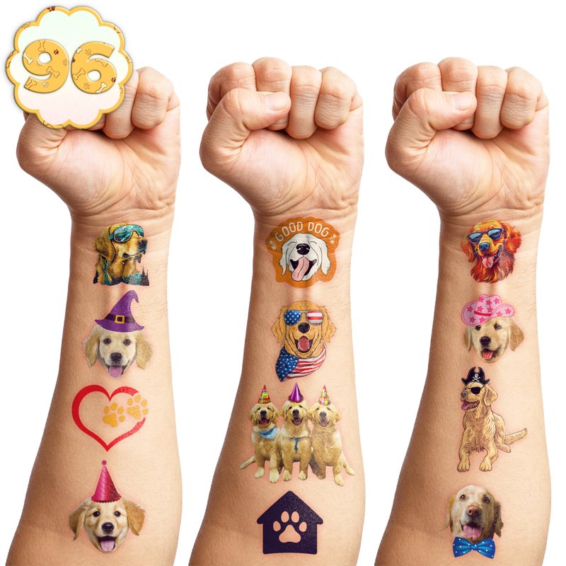 - 🎁[GREAT GIFT IDEAS FOR GOLD RETRIEVER PARTY SUPPLIES DECORATION]: Our Gold Retriever tattoos are a fantastic choice. Gold Retriever tattoos are suitable for dachshund dog parties, dog parties, pet parties, Easter dog fashion show, National Dog Day, Santa Barbara Dog Day, etc.They serve as wonderful party favors, showcasing your deep affection for these lovable canine companions.