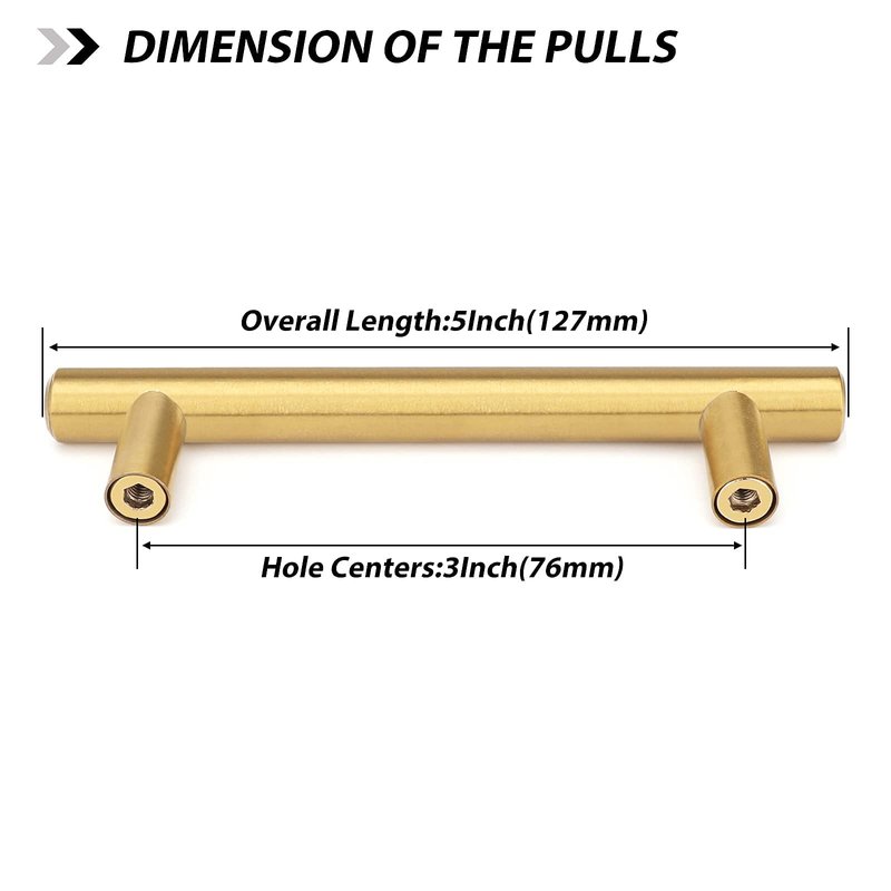 Brand New and high qualitySmooth surface and nice designEasy to install with included screwsBrushed Brass finished,the pull handles can help you create a stylish and complete look Great helper to pull out cabinet, drawer, dresser, wardrobe, door soon and conveniently