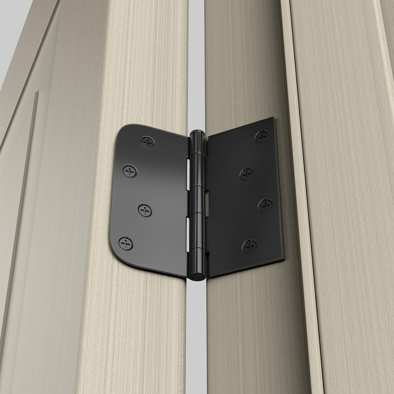 - Matte Black Finish - 4 inch x 4 inch, the round side is 5/8'' Radius Corners another side is square - We recommend you to apply 3 hinges for each exterior and interior door.