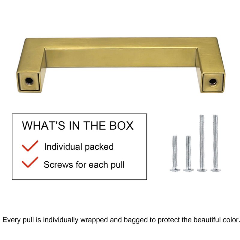 - SQUARE STYLE - goldenwarm modern square cabinet handles with brushed brass finish;Quite decorate your home. Suitable for different styles of cabinets,use these gold hardware to decorate your cabinets or update some old furniture,bring you a modern look.Very stylish and unique.